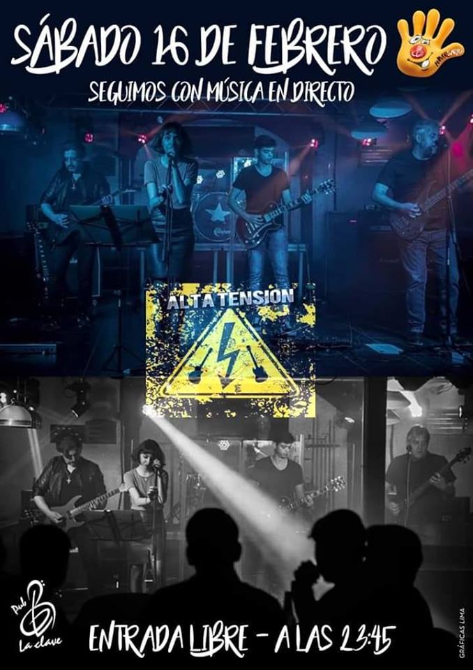 Este sábado 16 de febrero llega a Pub La Clave de Villanueva de Alcardete «ALTA TENSIÓN» una banda joven en su trayectoria pero que cuenta entre sus componentes con una mezcla de juventud y veteranía que le dan ese atractivo toque de rock autentico, que puede adaptarse a cualquier tipo de público, tanto joven como veterano, con una condición: que amen la música, que les guste el Rock puro, sin colorantes ni conservantes. Temas de The Beatles, Extremoduro, Rosendo, Led Zeppelin, Fito&Fitipaldis, Asfalto, Miguel Ríos, son algunas de las versiones que podrás escuchar en esta noche para enamorados de la música de toda la vida.