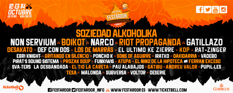 El festival se amplia a tres días y contará con más de 25 grupos invitados: SOZIEDAD ALKOHOLIKA, BOIKOT, NON SERVIUM, GATILLAZO, NARCO, RIOT PROPAGANDA, EL ÚLTIMO KE ZIERRE, DESAKATO, DEF CON DOS, KOP, RAT-ZINGER, LOS DE MARRAS, IRATXO, DAKIDARRIA, ANDREU VALOR, SONS OF AGUIRRE, EBRI KNIGHT, PIRAT´S SOUND SISTEMA, PONCHO K, GRITANDO EN SILENCIO, PROZAK SOUP, VADEBO, FUNKIWIS, EL NIÑO DE LA HIPOTECA Y FERRAN EXCESO, El TIO LA CARTEA, SVA-TERS, LA DESBANDADA, ATUPA, GATIBU, TESA, MALONDA, PUPIL-LES y SUBVERSA entre otros, pasarán por los escenarios del festival.