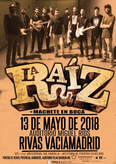 El domingo 13, es el turno de La Raíz y Machete en Boca. Entradas en Potencial Hardcore (Vallekas) 198 (Centro), en el Auditorio Pilar Bardém (Rivas) y online en Wegow ticketmaster y rivasciudad.