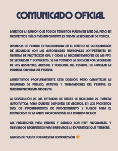 Cancelada la primera jornada del SAN SAN FESTIVAL.