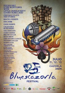 El Festival de Blues de Cazorla es la gran fiesta del blues en Europa y celebrará su 25º aniversario los días 11, 12 y 13 de julio de 2019. Tres días llenos de música y buen ambiente para disfrutar de la mano de un festival histórico en una edición muy especial.         Sugar Ray and the Bluetones con Little Charlie Baty y Duke Robillard, Caledonia Blues Band con un concierto único celebrando su 30º Aniversario, Eric Bibb, Melvin Taylor, John Primer, Maceo Parker, Tail Dragger, Corey Harris Band, Bette Smith, José Antonio García, Watermelon Slim, Will Jacobs, Txus Blues & Jose Bluefingers, Rockin’ Johnny, Boo Boo Davis, Jose Luis Pardo, Sra. Robinson, Casino