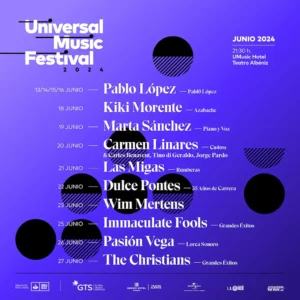 Apenas queda un mes para que arranque la octava edición del Universal Music Festival que este año estrena nueva sede en el recientemente remodelado Teatro Hotel Albéniz de Madrid. Del 13 al 27 de junio el lujoso UMusic Hotel Teatro Albéniz (Madrid).  presenta una programación que encabeza Pablo López, con tres días seguidos; 13, 14 y 15 de junio.  Kiki Morente, Marta Sánchez, Carmen Linares, Las Migas, Dulce Pontes, Wim Mertens, Immaculate Fools, Pasión Vega y The Christians. Aquí puedes conseguir las entradas:Universal Music Festival y toda la información que necesites