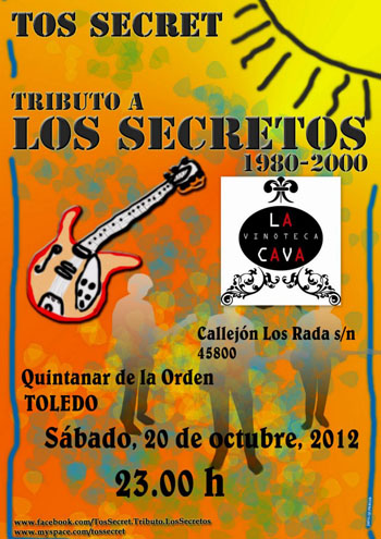 TOS SECRET: Aportando la experiencia de diferentes estilos musicales y llevando dedicados a la música desde los 80 deciden juntarse con el objeto de rendir homenaje a toda una generación y a los supervivientes de ella creando un grupo que rinda tributo a uno de los pioneros de la famosa “Movida Madrileña”: Los Secretos.