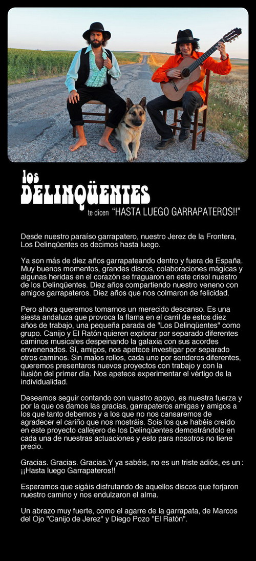 Con este comunicado Los Delinqüentes anuncian su adiós.