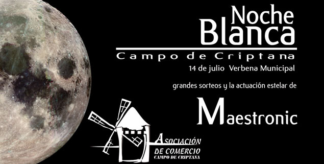 Este concierto está incluido dentro de los actos programados por la Asociaciónde Comercio de Campo de Criptana (Ciudad Real) que complementa una actividad creada para propiciar la dinamización en la localidad en relación a la propuesta comercial que ofrece el municipio y que cuenta con la representación de todos los sectores. Este sábado 14 de julio en la Verbena Municipal realizarán la Noche Blanca en la que un total de 38 establecimientos comerciales instalarán su stand para vender sus productos con precios rebajados desde las 8 de la tarde hasta la 1 y media de la madrugada.