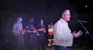 En una espléndida noche de verano, la Plaza del Ayuntamiento se convertía el sábado en el escenario perfecto para acoger un concierto de la Banda Sinfónica Municipal dirigida por Sebastián Heras y bajo todas las medidas de protección, higiene y seguridad establecidas por las autoridades competentes. En esta ocasión, aunque de manera reducida para guardar la distancia de seguridad, volvió a completarse el aforo y el concierto es una muestra para que la ciudadanía disfrute de la música con garantías de seguridad. En el acto estuvieron también presentes el alcalde, Juan Carlos Navalón y concejales del equipo de Gobierno Municipal. Precisamente el primer edil, dirigió unas palabras a los asistentes al inicio del concierto