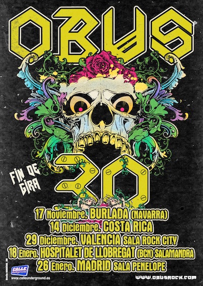 Finaliza la gira del 30 aniversario de OBUS. Han sido casi 2 años, con un montaje y repertorio especial, en los cuales se ha recorrido toda la geografía española. Mas de 80 fechas, mas de 200.000 personas y 500.000 kilómetros recorridos. Ahora toca poner fin a esta gira para descansar de la carretera, pero sin dejar de trabajar, e iniciar un nuevo espectáculo con nuevo diseño y montaje, preparar nuevos temas, etc. En definitiva lo que es OBUS, un no parar de ideas nuevas para mantener a la banda mas fuerte que nunca. Y para ello la banda quiere reencontrarse con las salas donde iniciaron CALLATE y su 30 ANIVERSARIO.