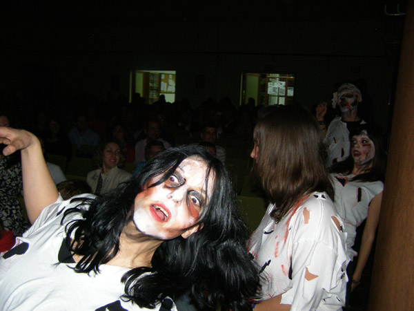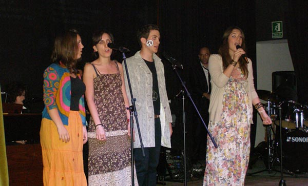 Ese legado lo ha recogido un grupo de profesores y alumnos al mando de Antonio Miñán y lo ha plasmado perfectamente en una obra a la que han puesto de nombre ROCK & ROLL RADIO. En mi opinión hay algo muy importante y digno de mención, los interpretes son profesores y alumnos del Instituto, los alumnos, la mayoría no sobrepasa los 16-17 años de edad, se supone que a ellos muchos de estos grandes de la historia del rock no les suena de nada, lo más probable es que antes de esto no supieran quien eran Janis Joplin, Robert Johnson o Aretha Franklin, por ejemplo. Javier Amaro es el Batería, Guillermo González el contrabajo, en un piano Gloria Cerrato en el otro y poniendo también la voz Helena Celdrán, a los teclados Javier Sanz y a la Guitarra: Antonio Miñán. Ellos hacen la música en directo. Los chicos/as y profesores que interpretan a los artistas son muchos y no tenemos espacio para nombrarlos a todos pero he de decir que en algunas partes de la obra con su actuación c onsiguen ponerte la carne de gallina.